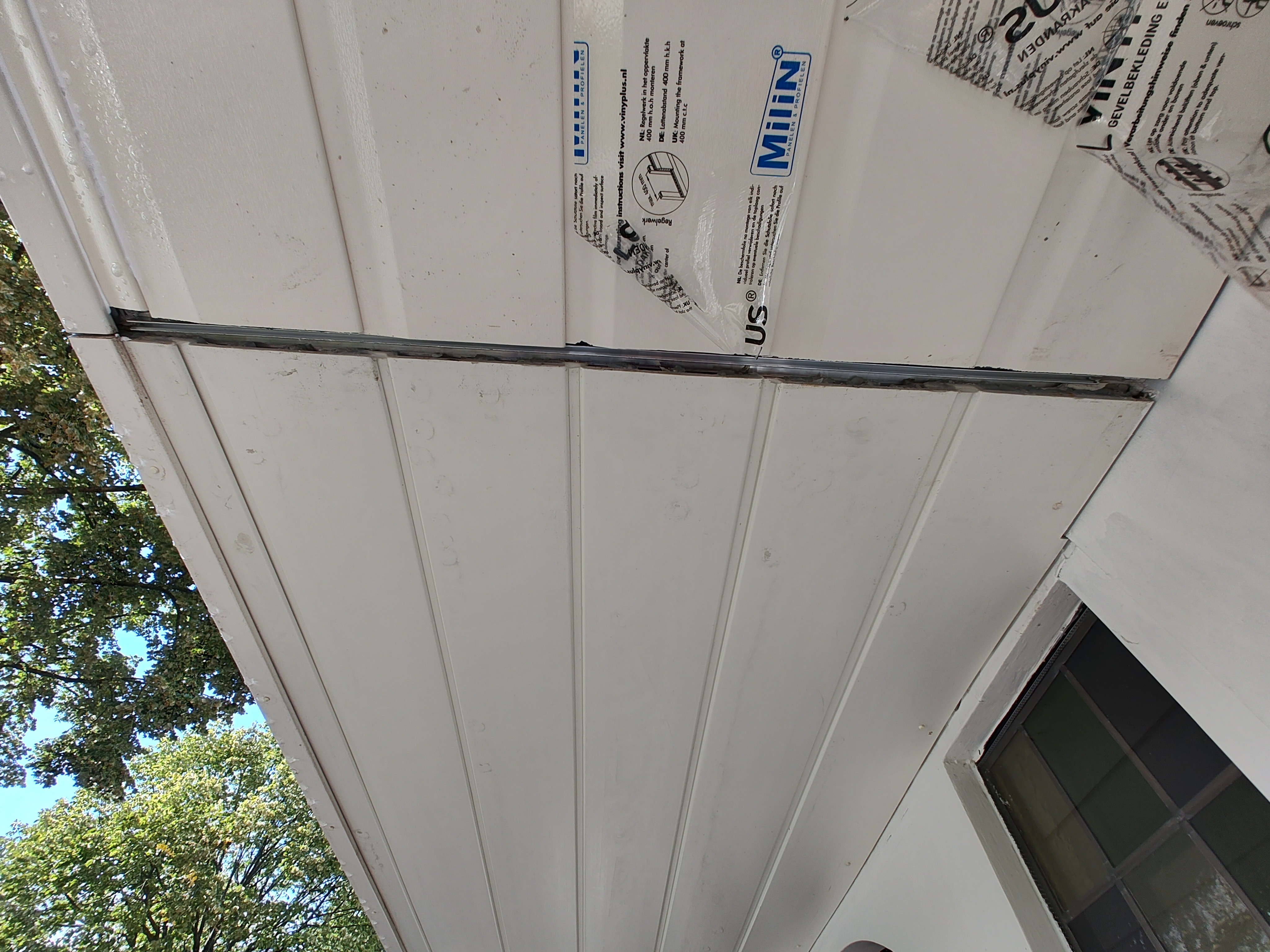 It was high time to do some painting on the underside of the overhang above our front door. The neighbor already put plastic panels over their part of the roof, so I decided to skip painting, and also install similar panels.