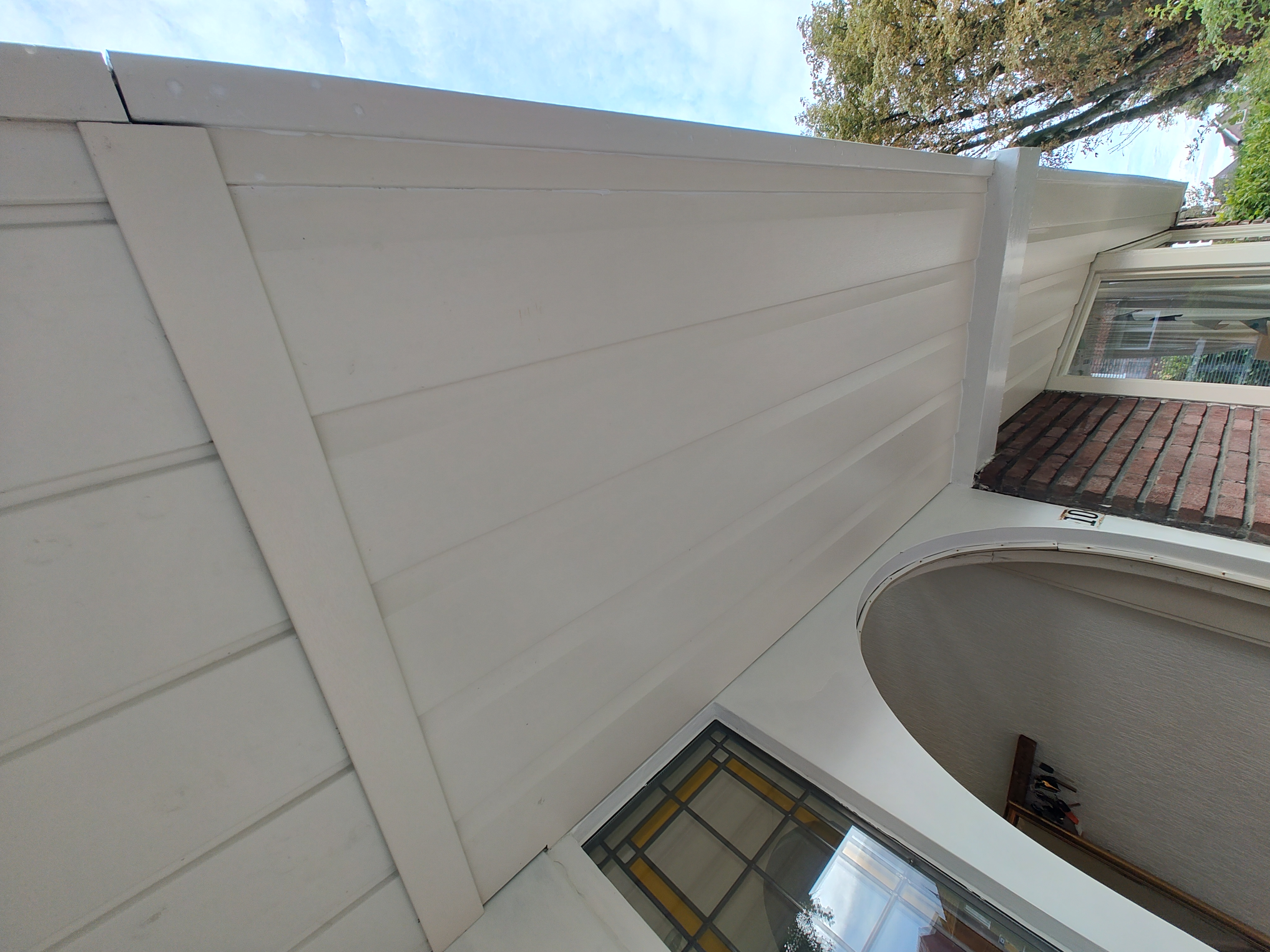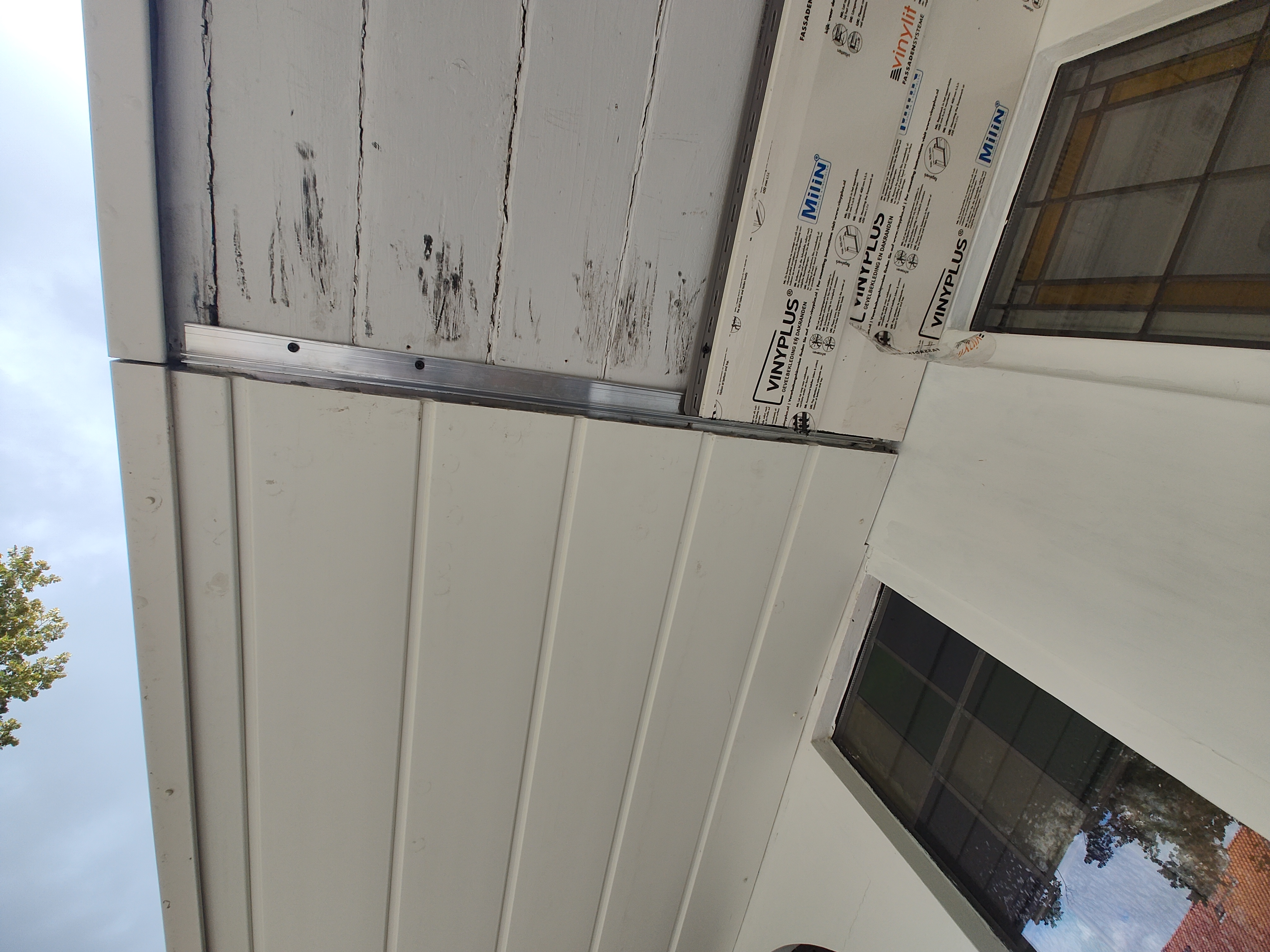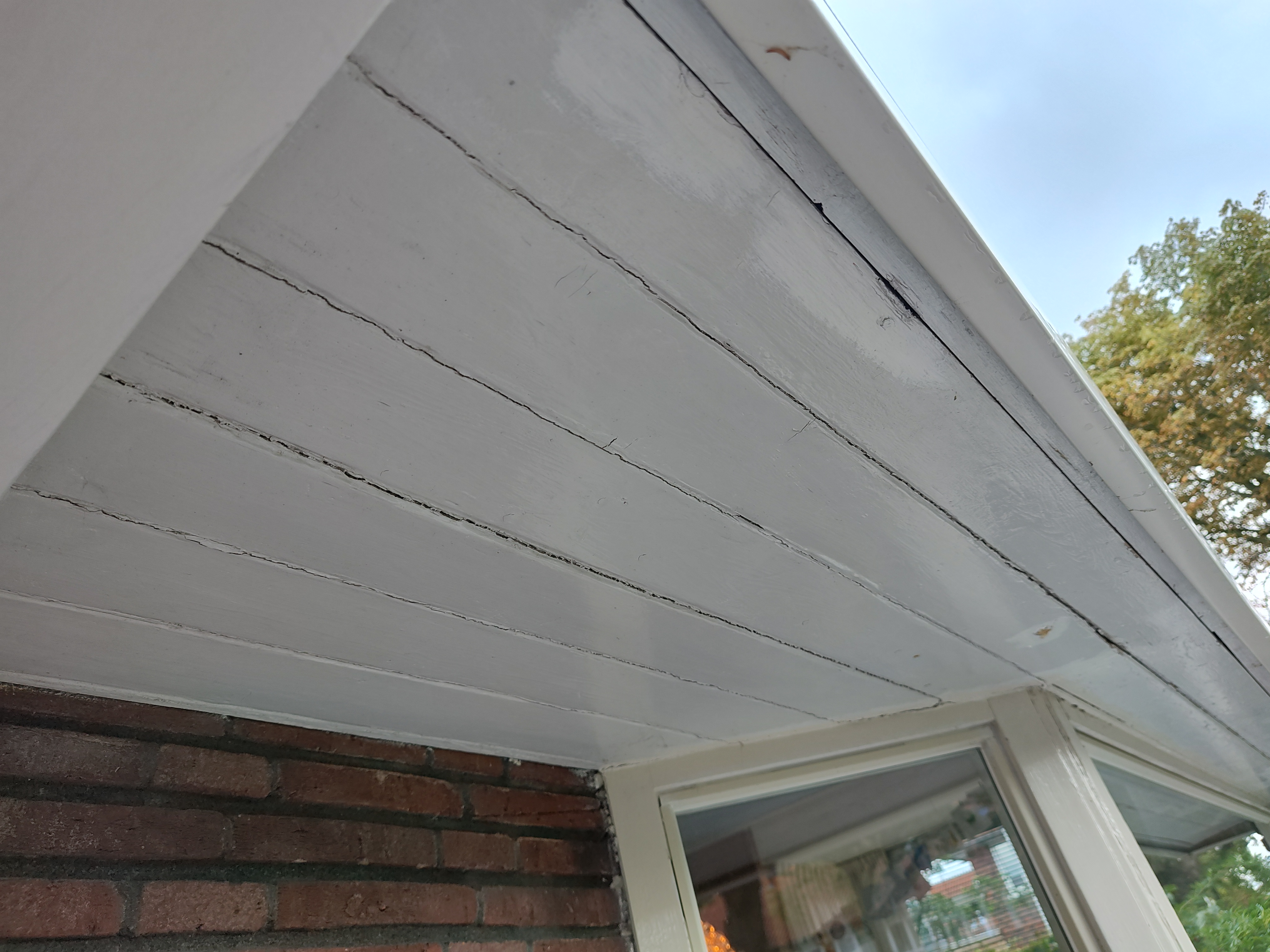 It was high time to do some painting on the underside of the overhang above our front door. The neighbor already put plastic panels over their part of the roof, so I decided to skip painting, and also install similar panels.