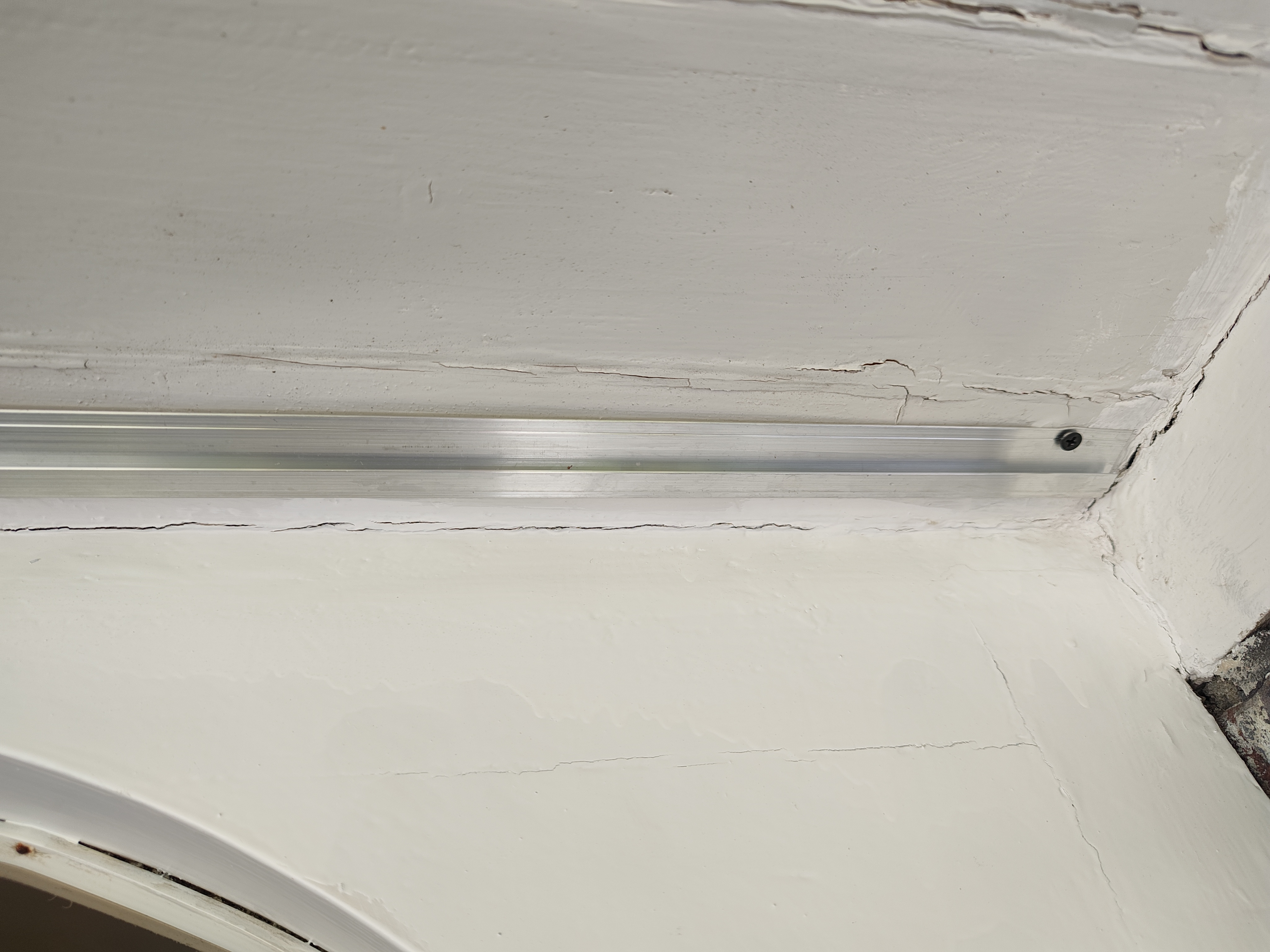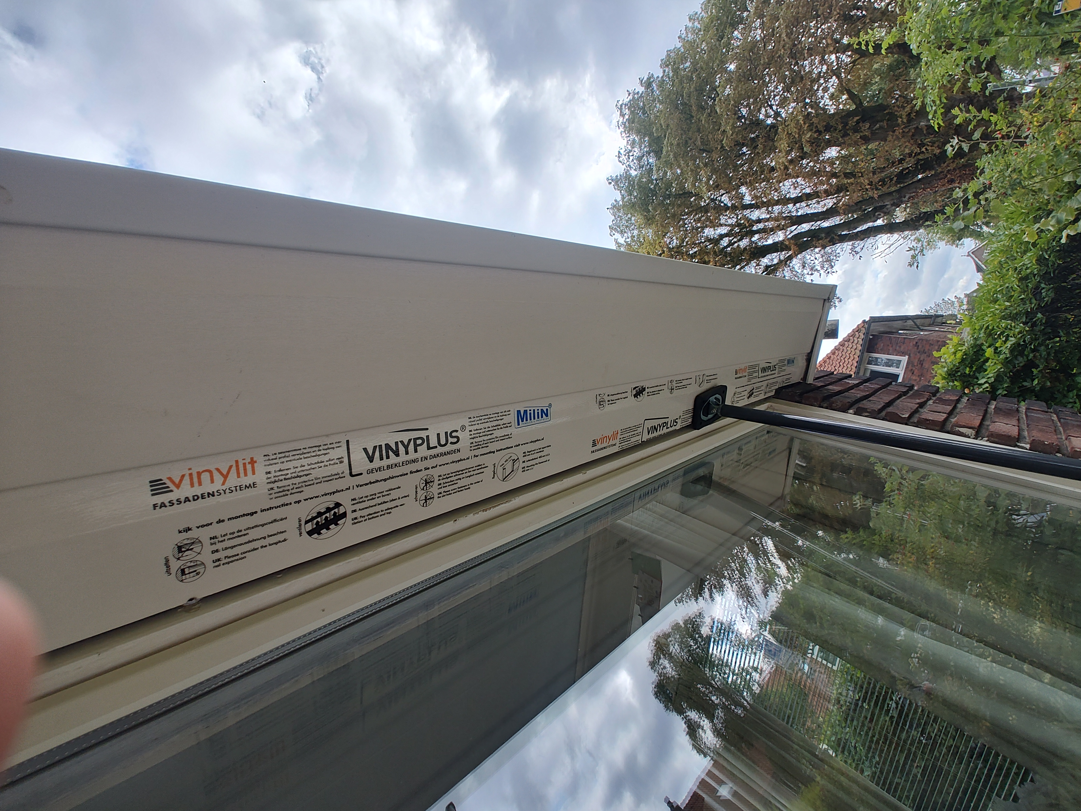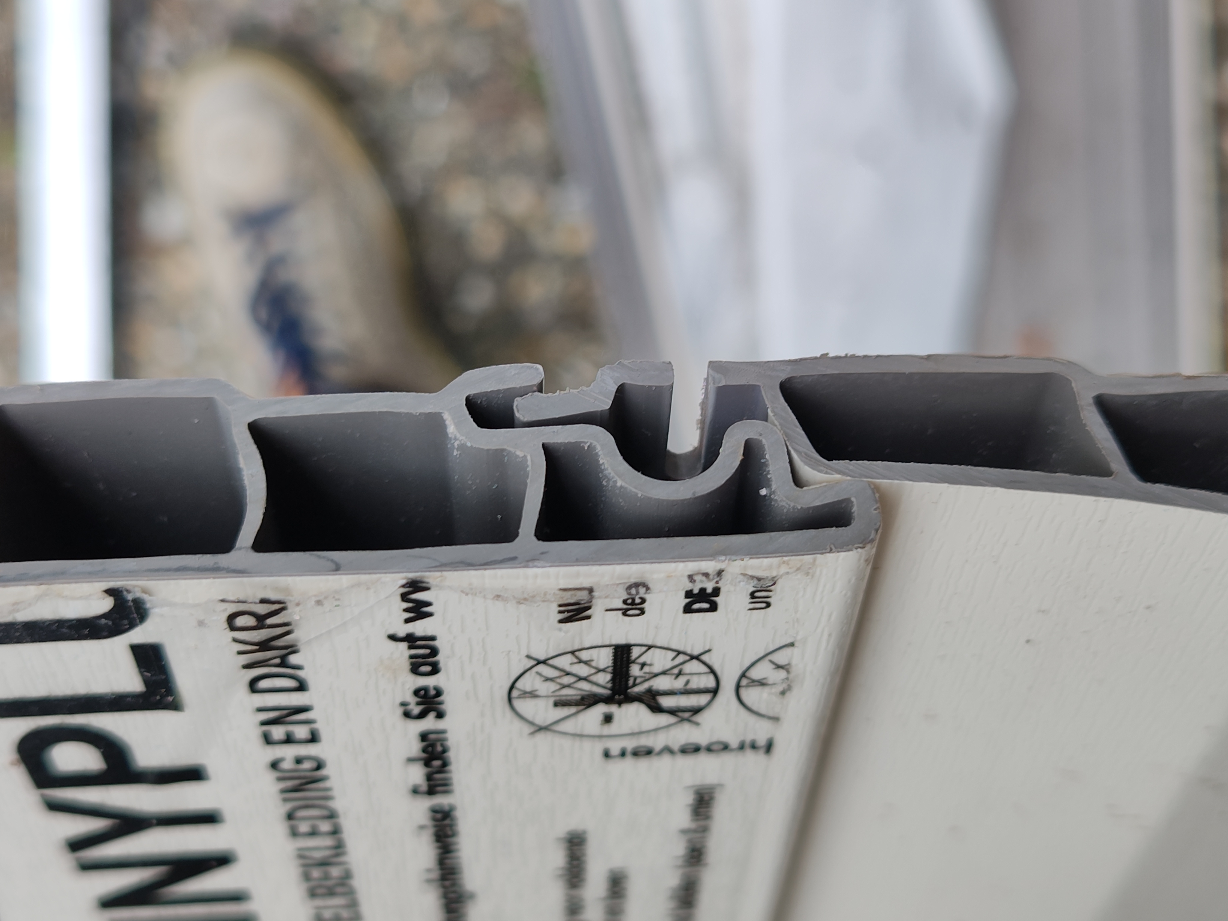 It was high time to do some painting on the underside of the overhang above our front door. The neighbor already put plastic panels over their part of the roof, so I decided to skip painting, and also install similar panels.